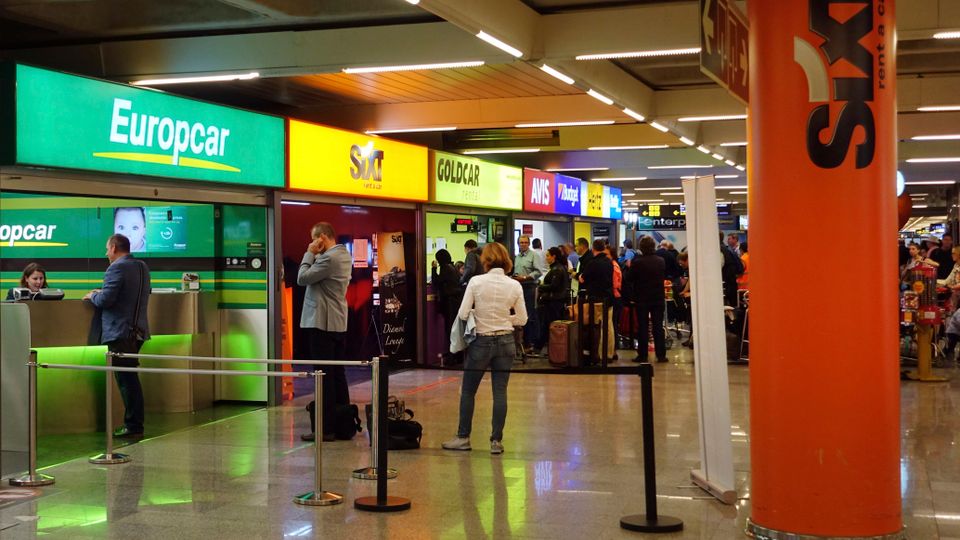Mietwagenbüros am Flughafen von Palma de Mallorca: International blieben die Preise relativ stabil