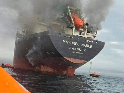 Brennendes Frachtschiff »Mayuree Naree« am 11. März in der Straße von Hormus: Transport stark verteuert