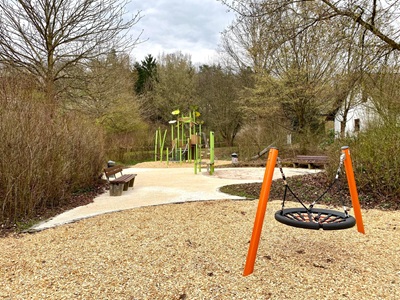 Im Sandbereich ergänzt ein rollstuhlgerechter Sandspieltisch das Angebot; zudem wurde frischer Sand eingebracht. Im westlichen Teil des Spielplatzes lädt eine neue Nestschaukel sowohl zum Spielen als auch zum Entspannen ein. Darüber hinaus wurde auch die Belagsfläche erneuert.