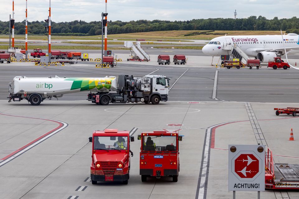 Tankwagen am Flughafen Hamburg: Kerosin ist infolge des Kriegs in Nahost weltweit knapper und teurer geworden