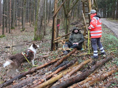 Drei Vermisste, die wahrscheinlich medizinische Hilfe benötigen, müssen in einem weitläufigen Waldstück gefunden werden. Diesem Szenario stellten sich die Rettungshundeteams des DRK-Kreisverbandes bei einer Übung am Helenenhof.