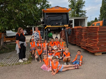 Rundfahrt mit der Kehrmaschine: Kindergartenkinder besuchten den städtischen Betriebshof und waren von dem außergewöhnlichen Fuhrpark begeistert