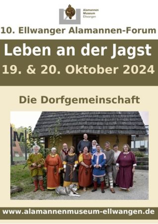 Foto: Beim 10. Ellwanger Alamannen-Forum am 19. und 20. Oktober 2024 dreht sich alles darum,wie bei den Alamannen die Dorfgemeinschaft organisiert war – das Plakat zieren die Geschichtsdarsteller der Ellwanger Gruppe „Alamanni“ (Foto: Museum).