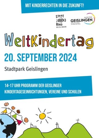 Am Freitag,den 20. September 2024,von 14 bis 17 Uhr lädt die Stadt Geislingen an der Steige gemeinsam mit dem Stadtjugendring Geislingen e.V. alle Kinder und Familien herzlich ein,den Weltkindertag im Stadtpark Geislingen zu feiern. Unter dem diesjährigen Motto „Mit Kinderrechten in die Zukunft!“ wird ein buntes Programm geboten,das die Rechte der Kinder in den Mittelpunkt stellt und zum Mitmachen einlädt.