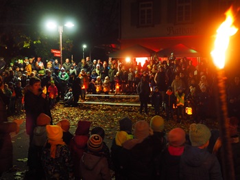 Etwas ganz besonderes hat am Dienstagabend zahlreiche Menschen zum Dorfplatz des Uhinger Stadtteils Holzhausen gelockt. Denn dort präsentierte der städtische Kindergarten Hofäcker ein liebevolles und aufwändiges Martinsspiel,um gemeinsam sein Laternenfest und zugleich das 30-jährige Bestehen zu feiern. Das letzte Mal fand diese Veranstaltung vor 10 Jahren anlässlich des 20-jährigen Bestehens statt.
