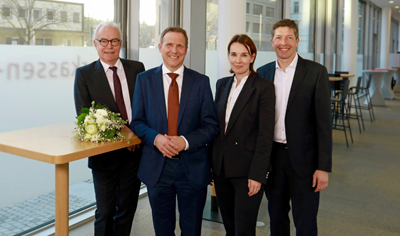 Foto von links: Landrat Edgar Wolff,Patrick Greuter,Cindy Berend und Klaus Meissner