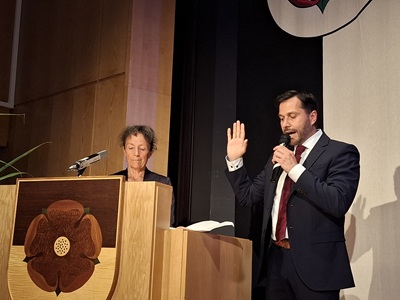 Alle Rednerinnen und Redner sprachen aber auch die vielen Herausforderungen an,die auf den Oberbürgermeister warten. Nicht zuletzt die desastöse finanzielle Lage der Stadt,die mit der Erhöhung der Kreisumlage in diesem Jahr auch nicht besser wird,engt die Arbeit der Stadt ein. Aber,so Ceffalia,eine Reise von 1000 km beginnt mit dem ersten Schritt. Er habe ein „ganz tiefes Bewusstsein für die Verantwortung dieses Amtes“.