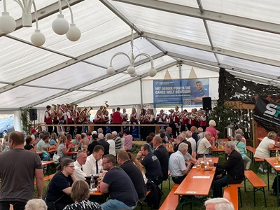 Foto (Heinschke): Gussenstadter Blasmusik im Festzelt am Sonntag,06.07.2025