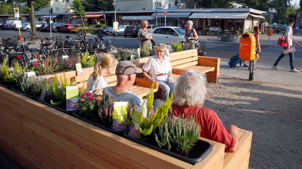 Parklets in Berlin: Mobile Stationen mit Pflanzen und Bänken