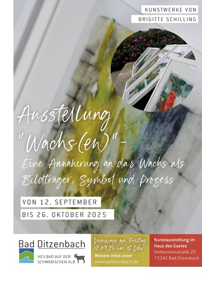 Das Auf- und wieder Abtragen vieler dünnen Schichten ergeben vielschichtige Kompositionen,die dazu einladen,Wahrnehmungen zu hinterfragen. Atypische Materialien bringen Leichtigkeit und Fragilität ins Bildmotiv,Fäden fungieren als verbindende Elemente und Pigmente verleihen den Arbeiten zusätzlich eine besondere Textur und Tiefe. Zu sehen ist unter anderem eine Serie von Bildern,die,gleich einer Welt unter Wasser,von Transparenz und Lichtreflexionen leben. Brigitte Schilling,ursprünglich aus der Pigmentmalerei kommend und nach wie vor praktizierend,beschäftigt sich parallel mit der Materie Wachs seit einigen Jahren und entdeckt immer noch neue Möglichkeiten des kreativen Einsatzes von Wachs – die Vielseitigkeit des Materials scheint unerschöpflich. Die Ausstellung lädt dazu ein,die Magie des Wachses in all seinen Facetten zu erleben. Alkie Osterland,Glas- und Schmuckgestalterin aus Schwäbisch Gmünd,wird in die Ausstellung einführen.