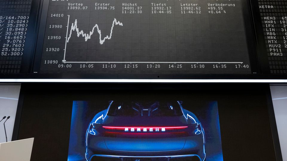 Börsentafel am Tag von Porsches Börsengang: Das Aktienkürzel P911 ist eine Reminiszenz an den ikonischen Sportwagen der Stuttgarter