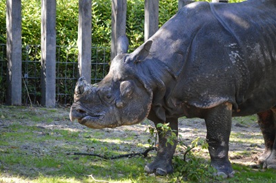 Foto (Wilhelma Stuttgart/Sabine Tomas): Bruno,ein über 40 Jahre altes Panzernashorn,hat in der Wilhelma schon mehrfach für Nachwuchs gesorgt.