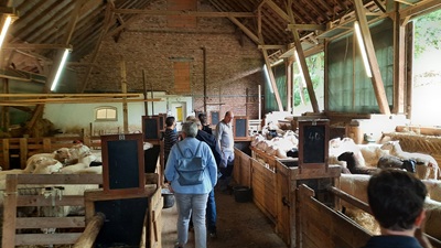 Hautnah konnte die Gruppe das zum Beispiel im Schafstall und Melkstand sehen: Dort waren einige große,gelbe Klebeflächen voller Fliegen angebracht. Auf die Frage eines teilnehmenden Kindes,was es damit auf sich hat,erklärte Hr. Winterling: Der Hof benutzt kein Gift gegen Schädlinge,wozu auch bestimmte Fliegenarten gehören. Also muss man sich mit einfachen Mitteln wie Fliegenfallen behelfen,vor allem im Sommer,wenn es eine sehr hohe Fliegenlast auf dem Hof gibt.