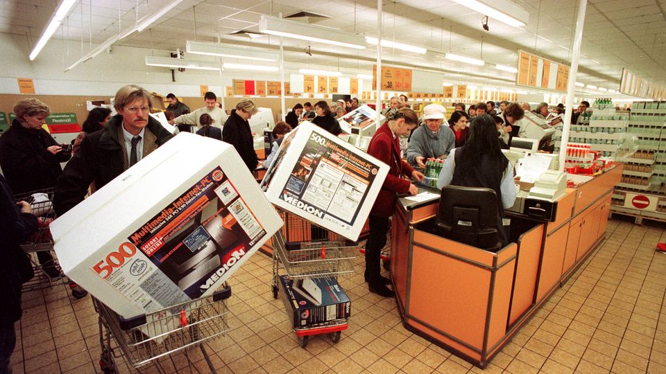 Ansturm auf Computer bei Aldi im Jahr 2001: Stundenlanges Warten