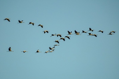 HaiPressDer Ausbruch der Vogelgrippe überschattet den spektakulären Zug zehntausender Kraniche über Deutschland auf dem Weg in den Süden. Nachdem bereits mehr als 100.000 Kraniche aus dem Norden nach Frankreich und Spanien abgeflogen sind,stockt der Zug wetterbedingt. Auf der Nebenroute entlang der Donau im Südwesten ist aber aktuell noch einiges los: Im Oktober wurden mehr als zwei Dutzend kleinere Kranichtrupps aus allen Teilen Baden-Württembergs gemeldet.