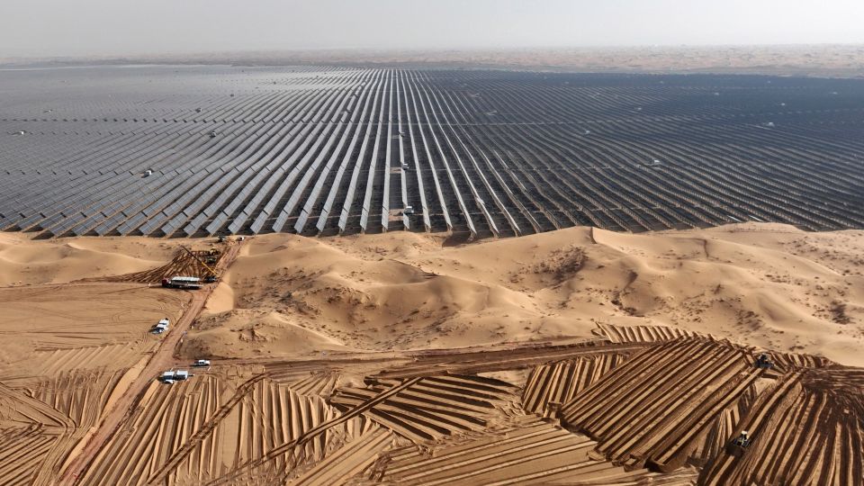 Solarpark in der Region Ningxia: In halsbrecherischem Tempo baut China erneuerbare Energien aus – womöglich auch,um den KI-Wettlauf zu gewinnen
