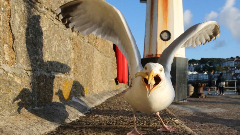 Wie wird man ungebetene,gefiederte Besucher am Strand oder an der Uferpromenade los? Wenn es sich dabei um Möwen handelt,hilft womöglich Anschreien. Zu diesem Schluss kommen britische Biologen in einer neuen Studie. Wie aus der nun im Fachmagazin »Biology Letters« veröffentlichten Untersuchung hervorgeht,war eine brüllende Männerstimme die effektivste von drei Abwehrmethoden,die in neun Küstenorten in Cornwall im Südwesten Englands getestet wurden.